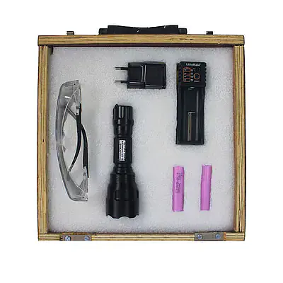 Torch + 2 Rechargeable Batteries + 1 Battery Charger + 1 UV Protection Goggle + Carry Case provided free of charge